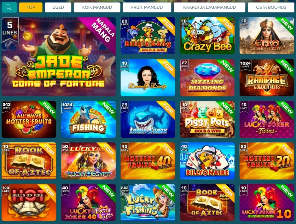 Mida see tähendab. Kui otsid kaasaegset multi-stuudio valikut (Pragmatic Play, Play’n GO, Nolimit City, Evolution Live jne), siis GrandX sind ei kõneta. Valik on vanamoeline ja kaldu klassikaliste slotikate poole.